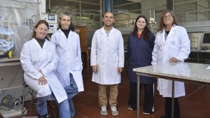 El equipo completo en el CINDEFI. De izq. a der.: Andrea Astoreca, Cecilia Gortari, Santiago Vio, Nadia Cerezo y Flavia Luna.